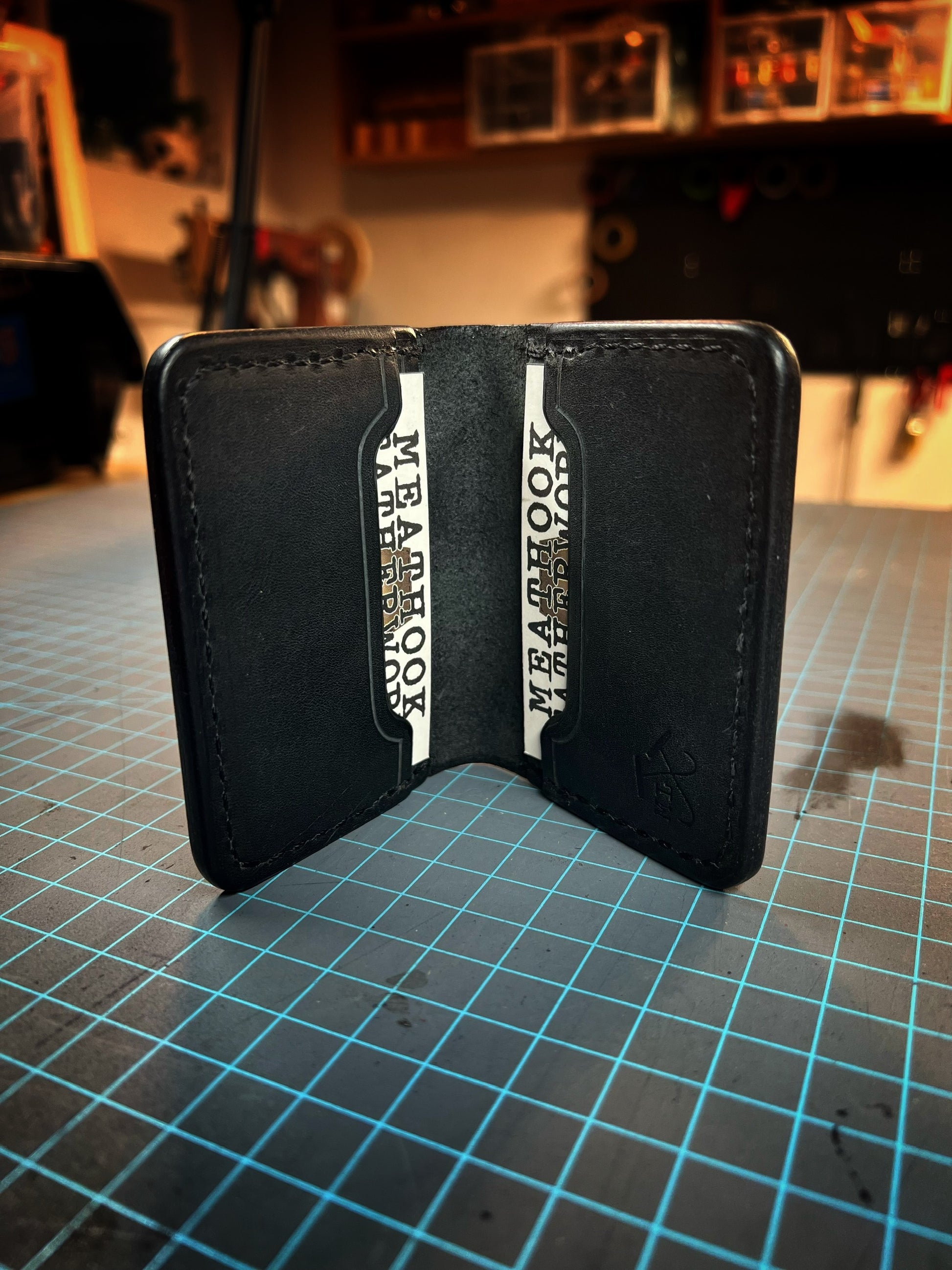 This unique card holder can carry cards on the outside and inside, up to 8 cards. 2 per pocket.