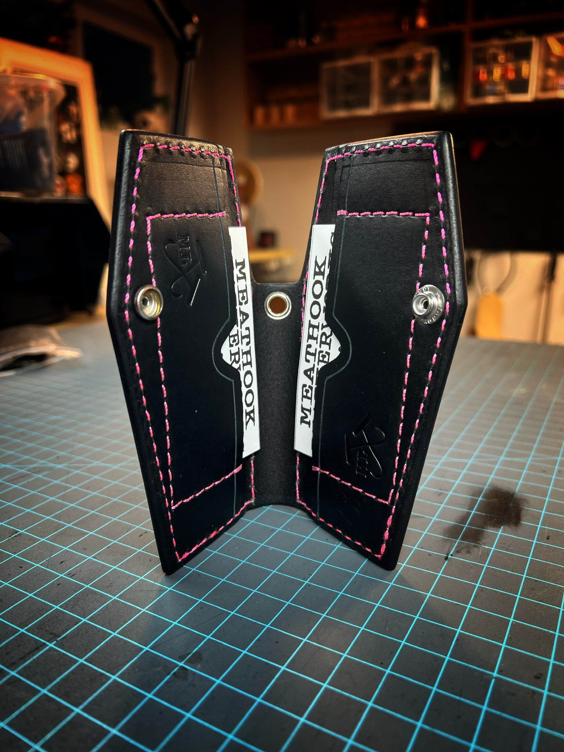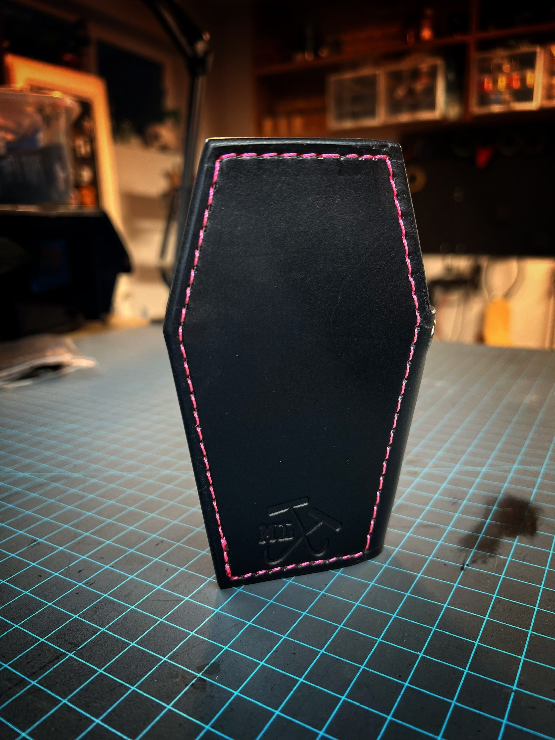 This minimalistic Shorty coffin wallet is perfect for those who are looking for a smaller carrying solution. It can comfortably carry up to 6 cards, 3 per slot, and a few folded bills. It also includes a metal grommet-reinforced hole which is compatible with a braided leather wallet leash or a chain of your choice. At 5 3/4 inches tall, it is small enough to fit in your front pocket, inside vest pocket, or jacket pocket with ease.