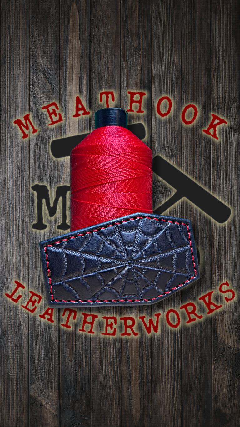 This bad ass belt buckle is tooled by hand with a spider web design and can be customized with your choice of stitching color. It has been crafted to fit belt straps up to 1-3/4" in width.
