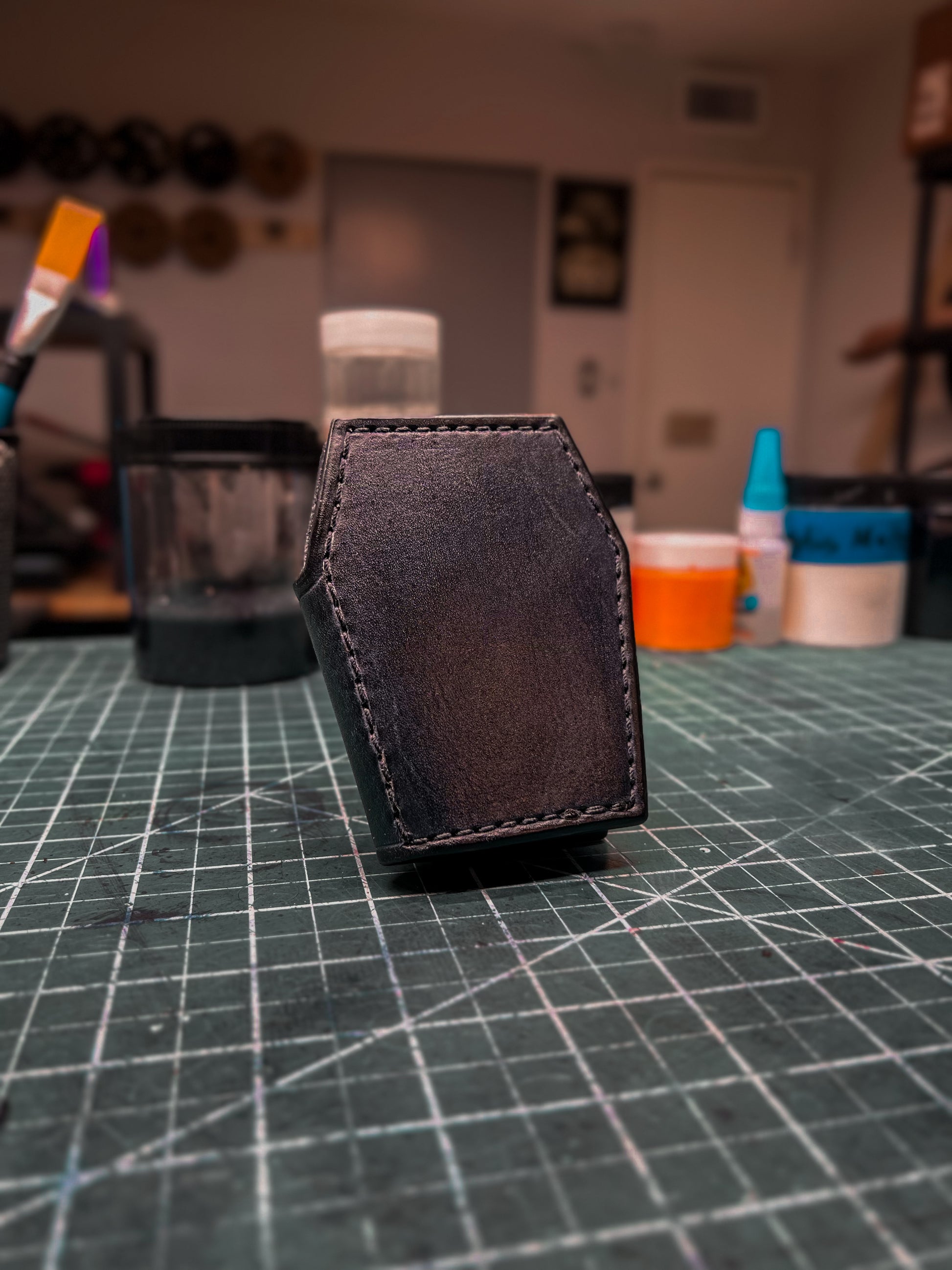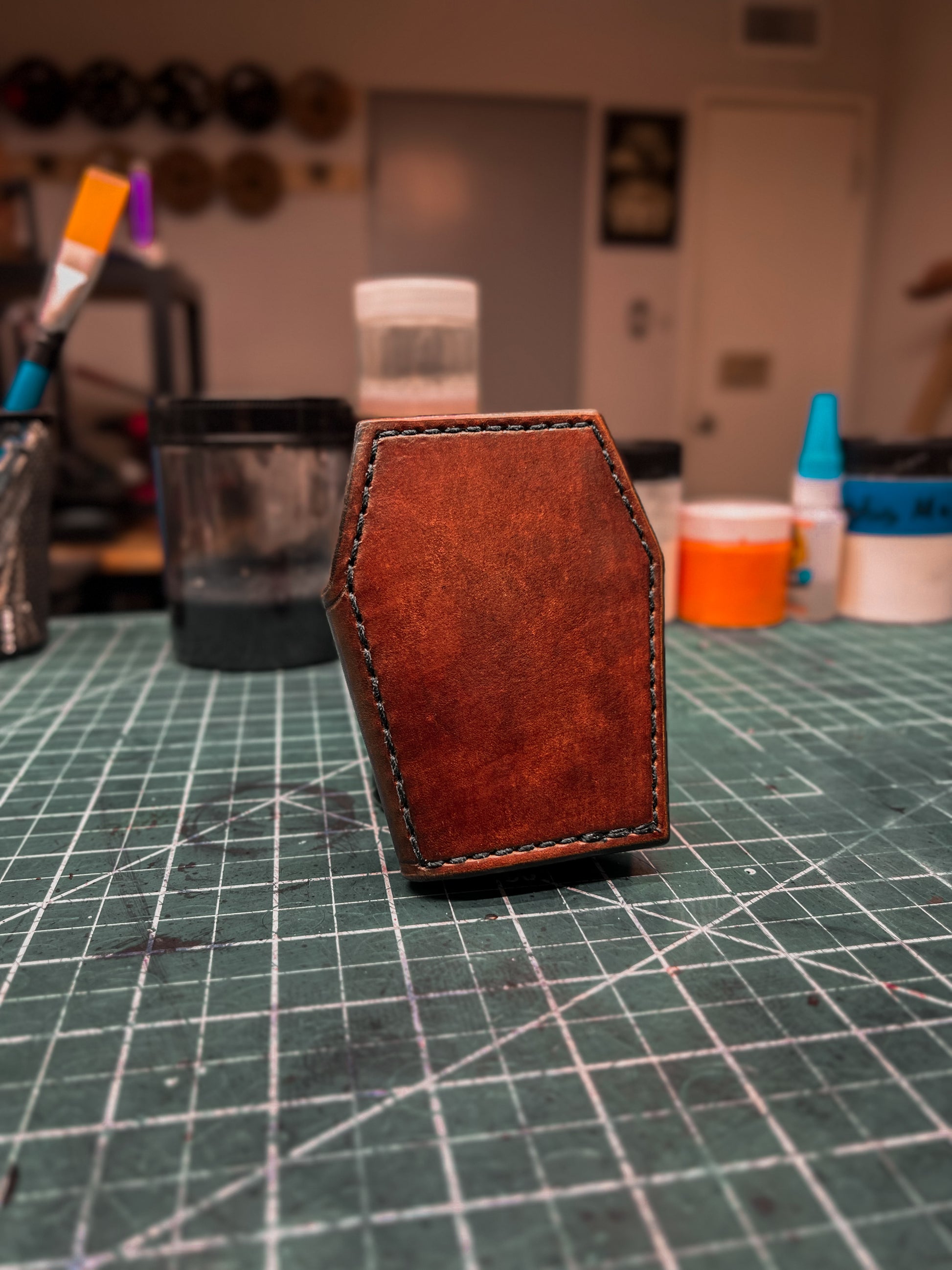 Feel the power of this MICRO yet MIGHTY creation, featuring the iconic coffin shape of Meathook Leatherworks. With the ability to hold 4-8 cards and folded cash, this wallet keeps your essentials secure with a sturdy metal snap. Don’t sleep on this bold piece of functional art!