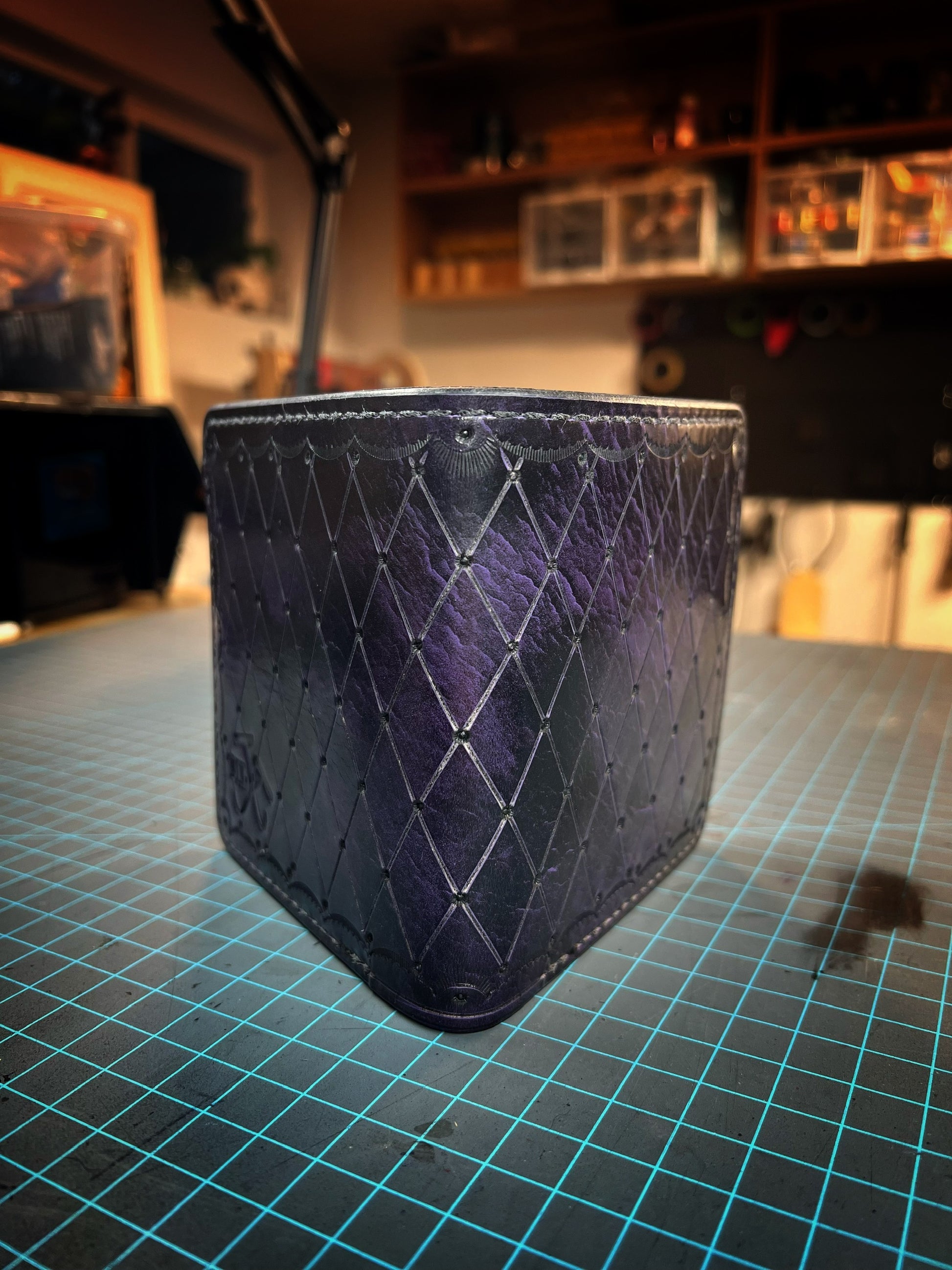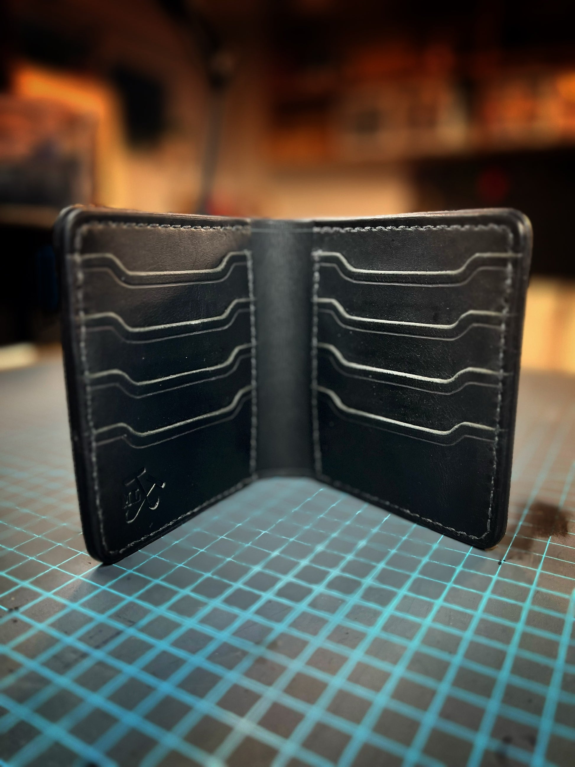 This beast of a wallet is made in a very limited color. I call it Midnight purple. You can stash full length bills and up to 16 cards.